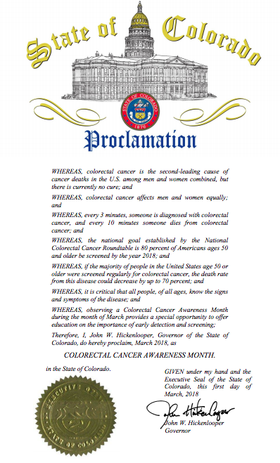 The White House followed suit and proclaimed March as Colorectal Cancer Awareness Month.